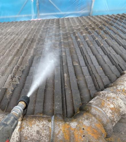 その後洗剤を撒き、高圧洗浄を行います!