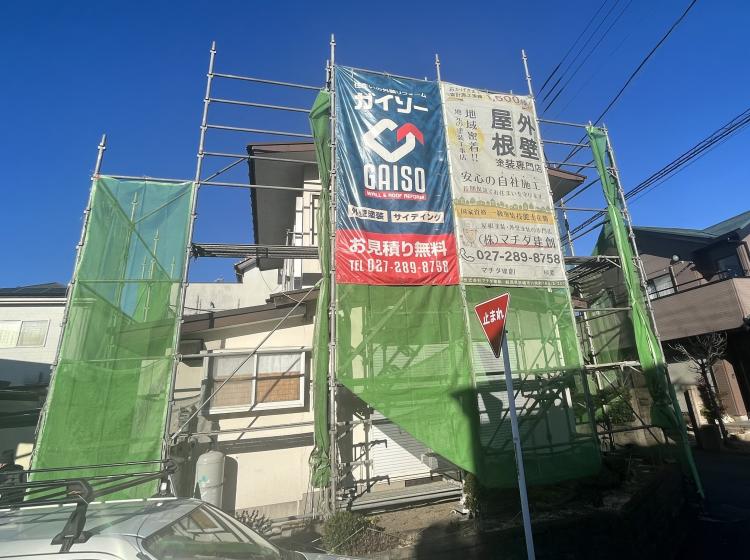 > 藤岡市にて外壁塗装工事開始いたします