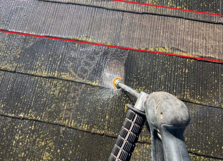 高圧洗浄とは表面にあるコケやカビなどの汚れを水圧の力を使って落としていく作業となります。
