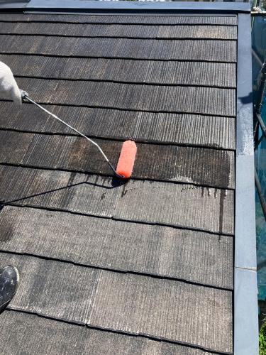 中塗り・上塗りに使用した塗料が『ガイソールーフガードネオMUKI』になります。