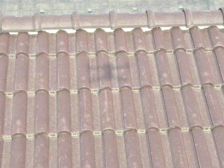 瓦と瓦の間やくぼんでいるところが、屋根の色とは違う色になっているのがわかると思います。