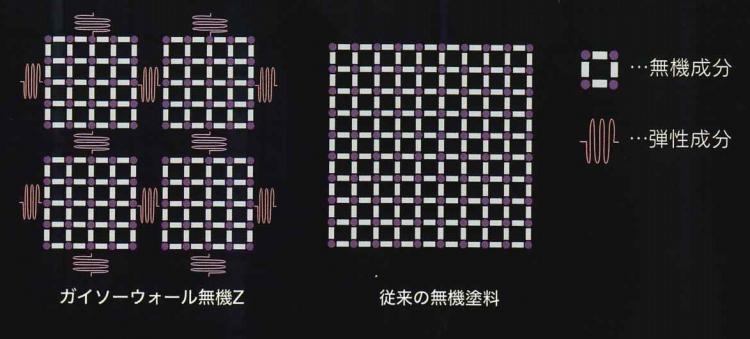 ですが無機Zでは、無機成分と有機成分を組み合わせたことにより、バランスのとれた強靭で柔軟な塗料を形成することが出来ました。