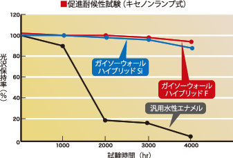 促進耐候性試験での光沢保持率(キセノンランプ式)